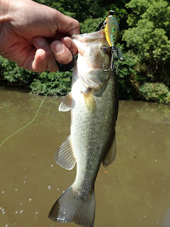 さて、本日も濁り池からスタート。ザラスプークを空中30cmほど吹き飛ばされるという見事なヒットもあったのですが、結局は一尾も針掛かりせず。仕方なしに転進、転進。三か所目はやや水の澄んだ山上池。開始後すぐに、小さなバスとブルーギルが相手をしてくれました。